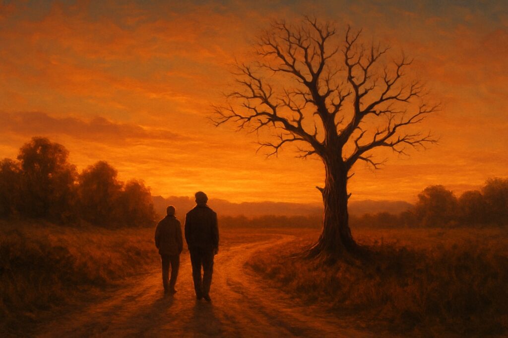 كنا نسير معًا، أنا وصديقي، في دربٍ ريفي هادئ، يلوّن الغروب فيه أطراف السماء بلون الصدأ، وتغفو الطيور في صمت