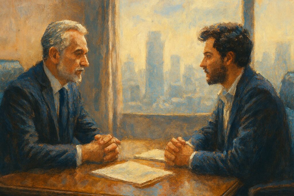 في قاعة واسعة، بإضاءة هادئة تمنح المكان إحساسًا بالسكينة والجدية، جلس مسؤول حكومي رفيع المستوى مقابل رئيس مجلس إدارة مؤسسة