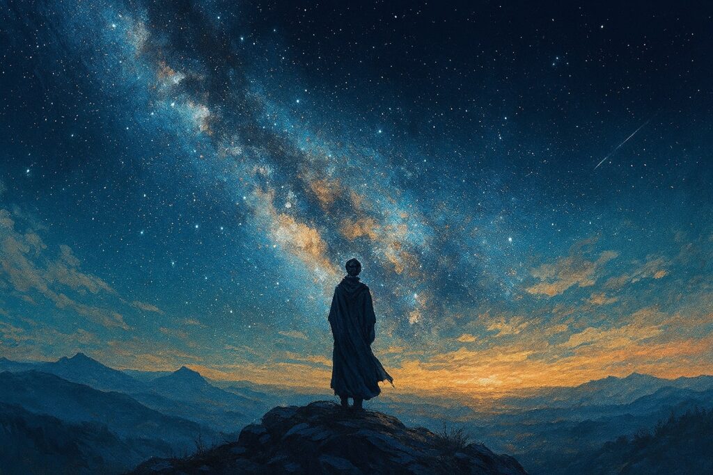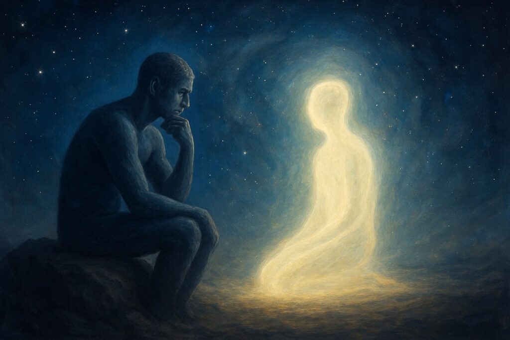 في صمتٍ يتدلّى من سقف الكون، حيث لا زمان يقيّد اللحظة ولا مكان يحدّ البصيرة، جلس العقل على صخرة الفكر،